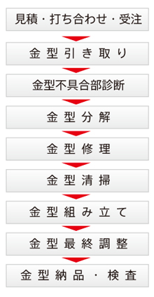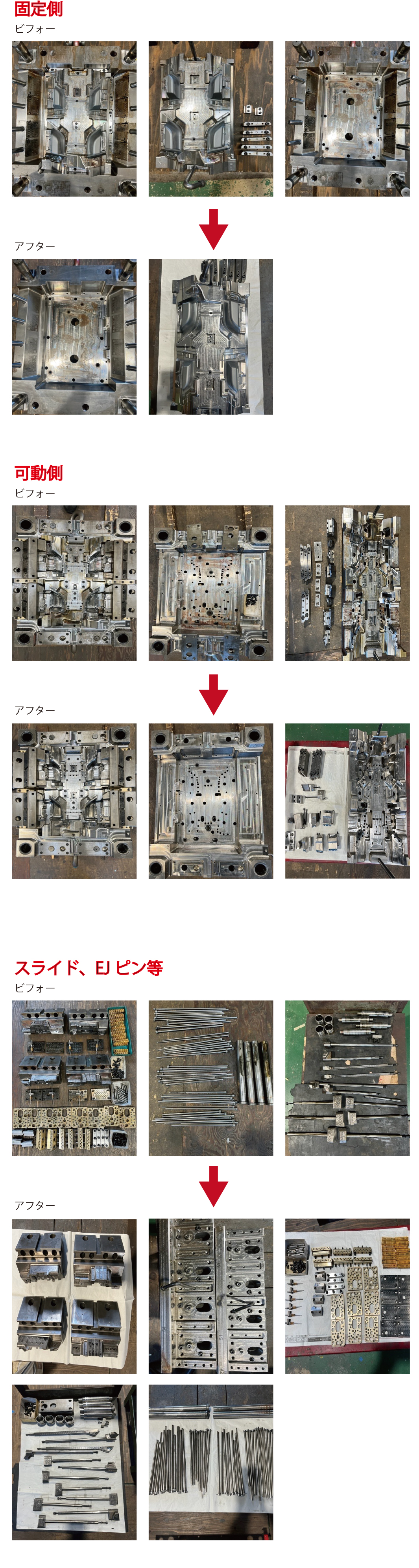 お客様からお預かりした金型は、経験豊富な技術者達の手により金型バラシ時に、お客様の方で把握していなかった補正内容などを確実に見極めております。